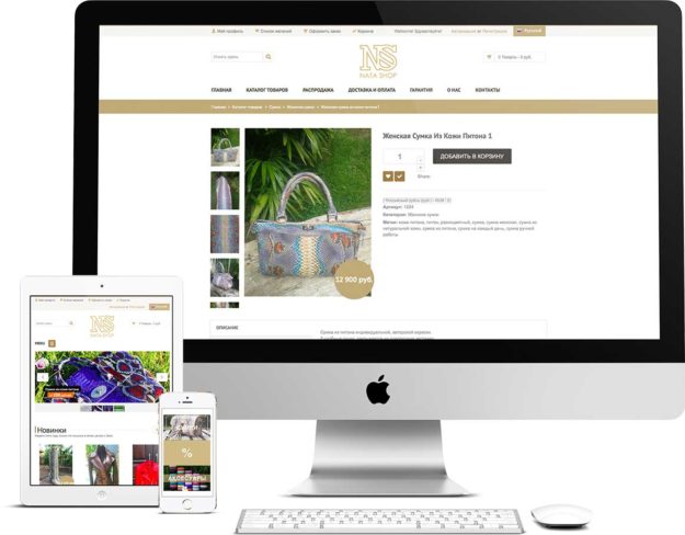 ← Мобильная версия. Ссылка на выполненный проект:Интернет-магазин изделий из кожи питона nata-shop.com